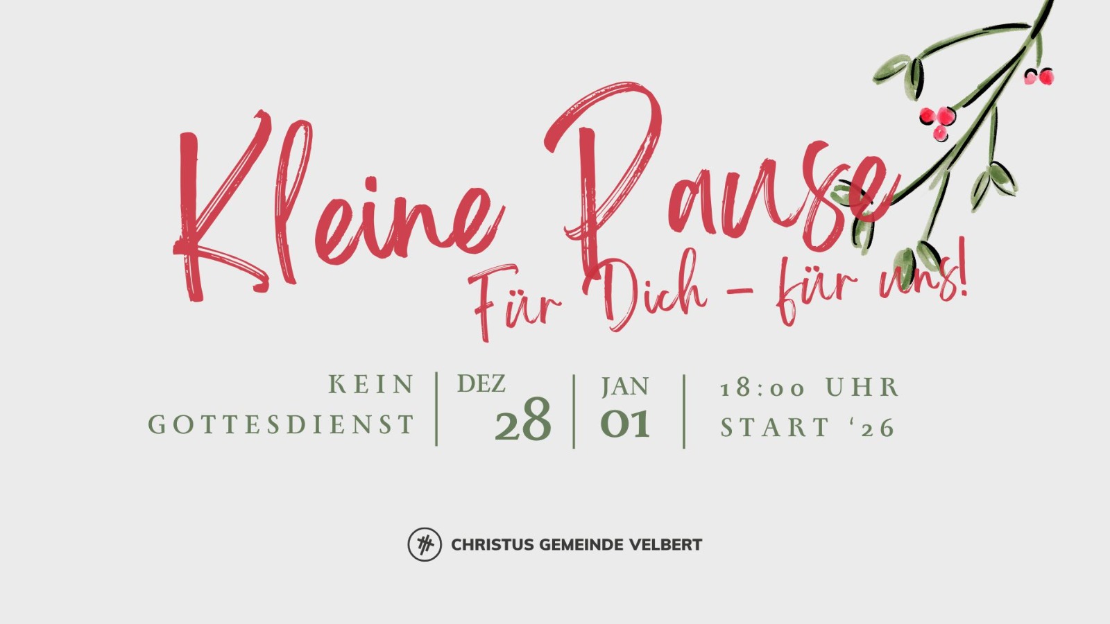 [INFOS 24.12.2025] Vom 25.12.2025 bis 01.01.2026 machen wir eine kleine Pause. Am 01.01.2026 starten wir um 18:00 Uhr mit Gebet, Lobpreis und Gemeinschaft. Willkommen in der CGV!...