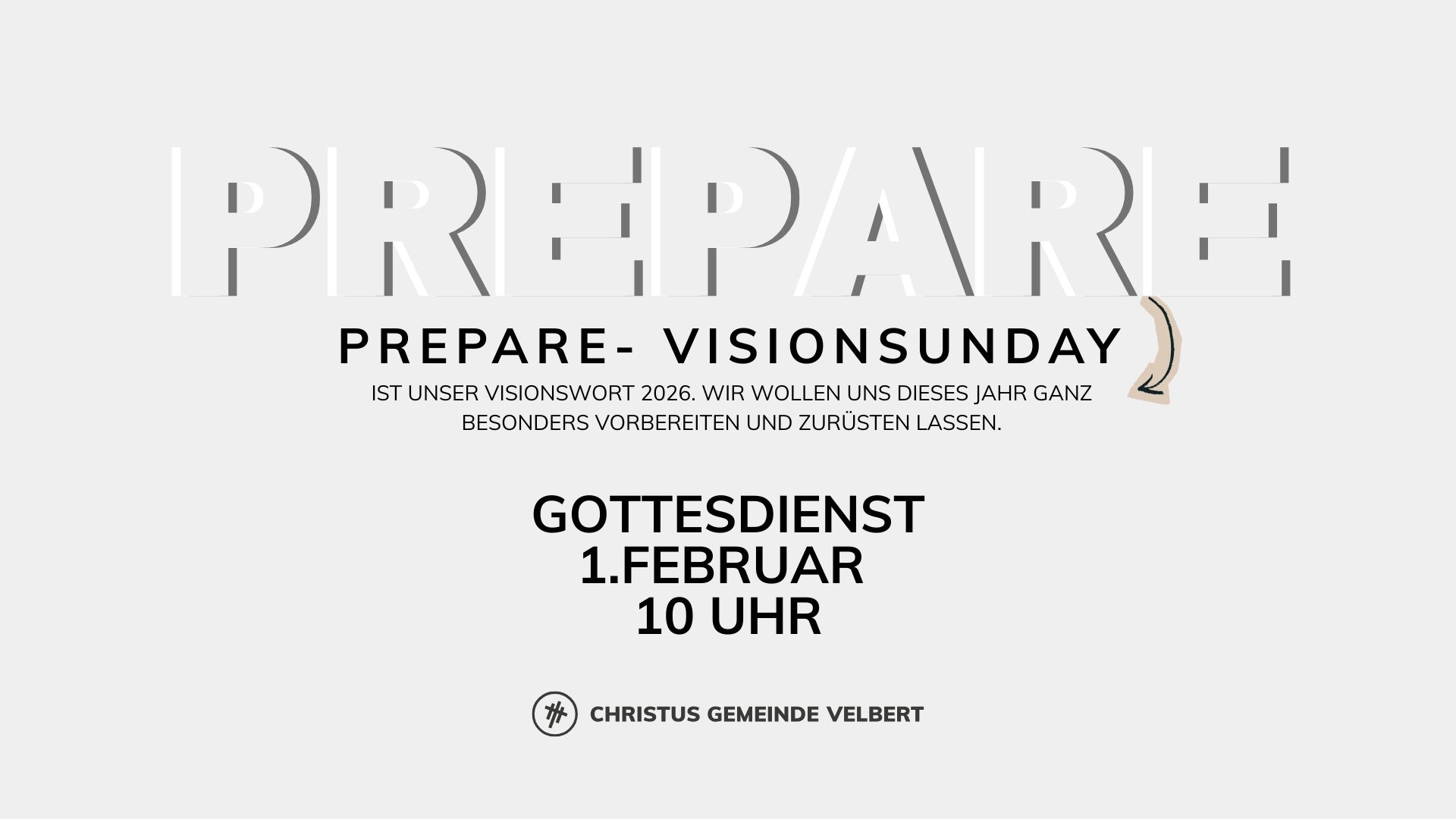 [INFOS 01.02.2026] Willkommen zu unserem VISIONSUNDAY (Visions-Sonntag) 2026. Unser Visionswort in diesem Jahr heißt "PREPARE". Wir wollen uns vorbereiten und zurüsten lassen. Willkommen in der CGV!...
