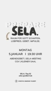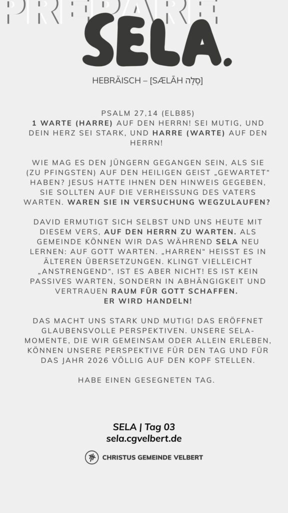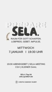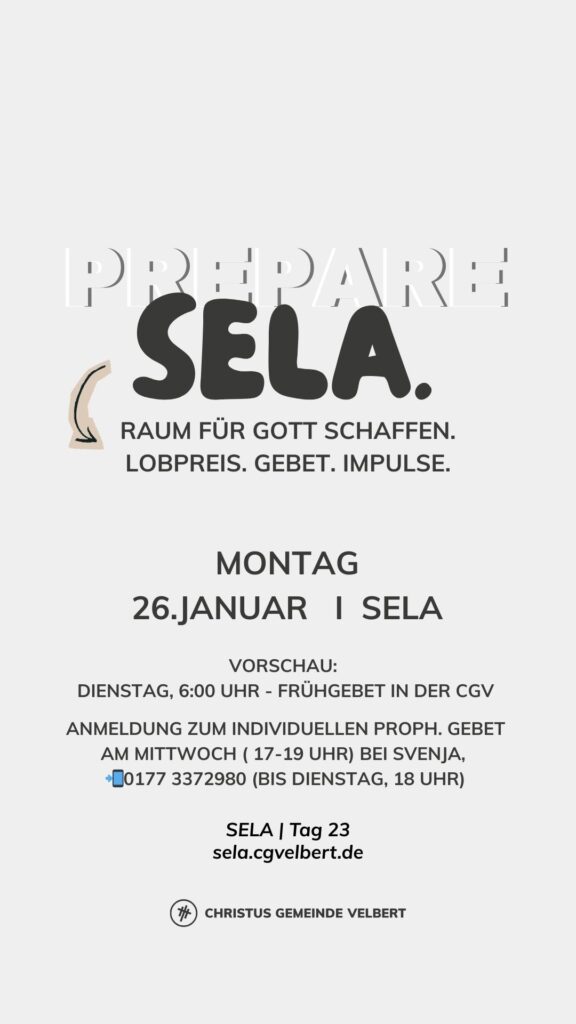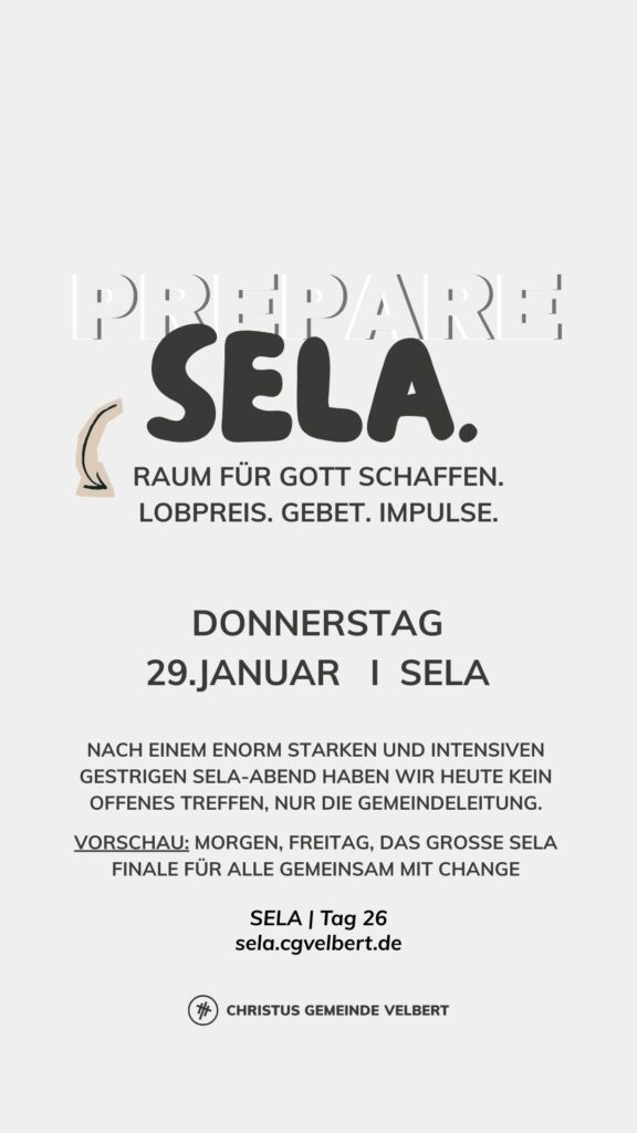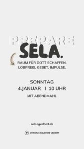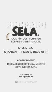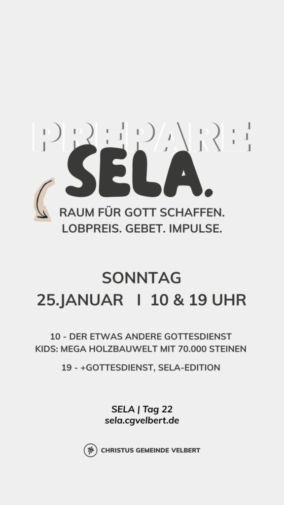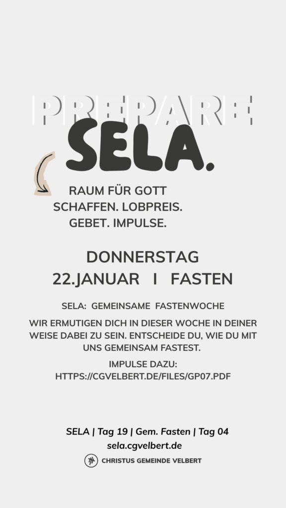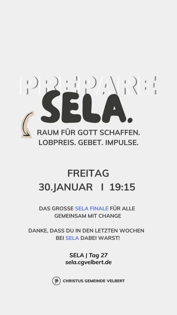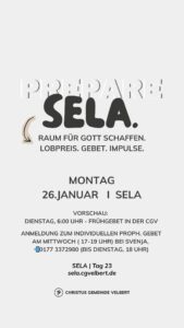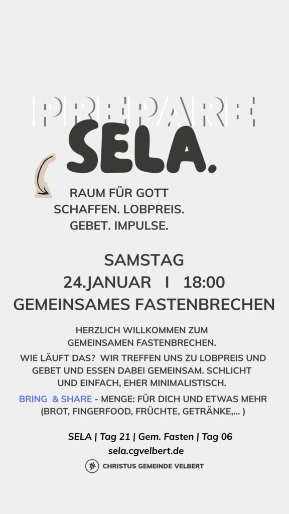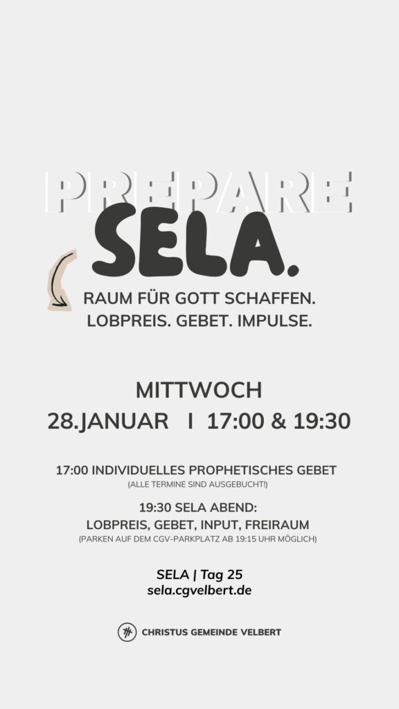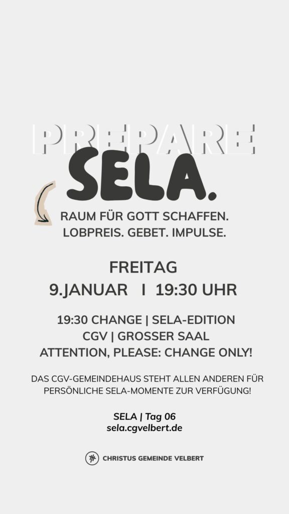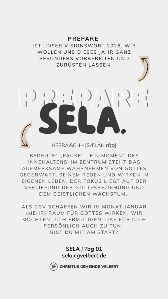 Als CGV wollen wir gemeinsam einen Monat „SELA“ ausrufen und genießen. Dafür schaffen wir im Monat Januar 2026 Raum. Und wir möchten dich ermutigen, das für dich persönlich auch zu tun.